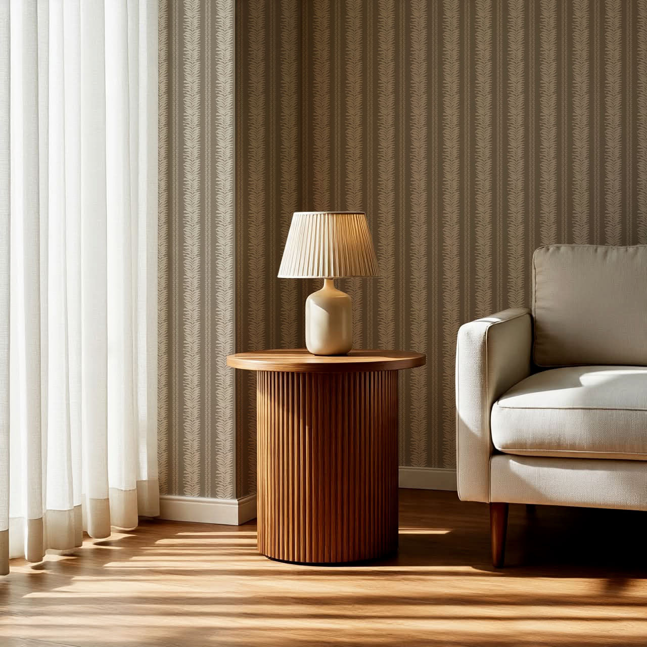 Teri Khaki Vertical Leaves Wallpaper